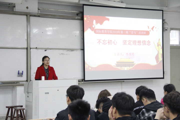 4月9日中午,yl6776永利集团第一期“青年马克思主义者”团学骨干培训隆重开班。党总支书记李秀琴以《不忘初心 坚定理想信念》为题,在教学组团117教室做了首场专题辅导报告,开启了2019年“青马”培训的新篇章。
