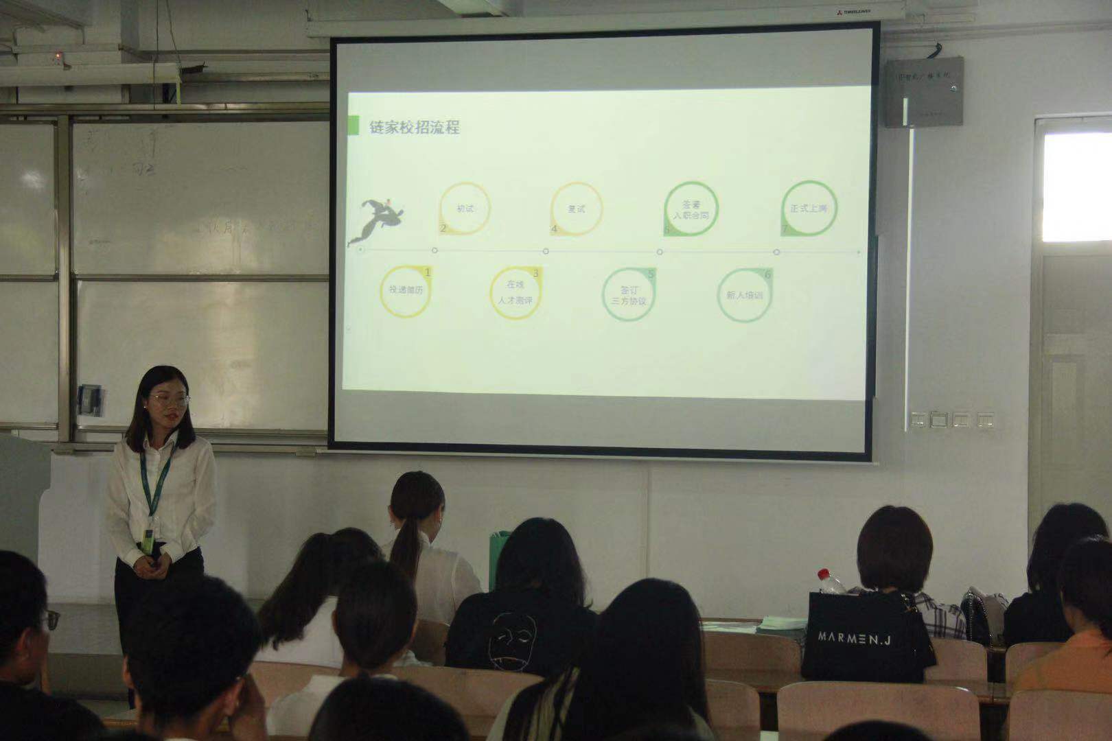 为了解当前的就业趋势,缓解就业压力,促进2020届毕业生充分就业,yl6776永利集团于9月25日邀请上海链家房地产经纪有限公司在教学组团楼217教室开展专场招聘宣讲会,并在宣讲会结束后统一组织了面试招聘活动。yl6776永利集团就业管理员常亚楠及102名毕业生参加了本次宣讲会。