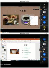 通过直播功能,随机抽取小组对红茶,普洱茶等茶叶知识做PPT展示,并针对本节不同的知识要点设计了关键问题,随机连麦提问,以问题为驱动,积极启发学生思考,同学们积极回答,气氛活跃。