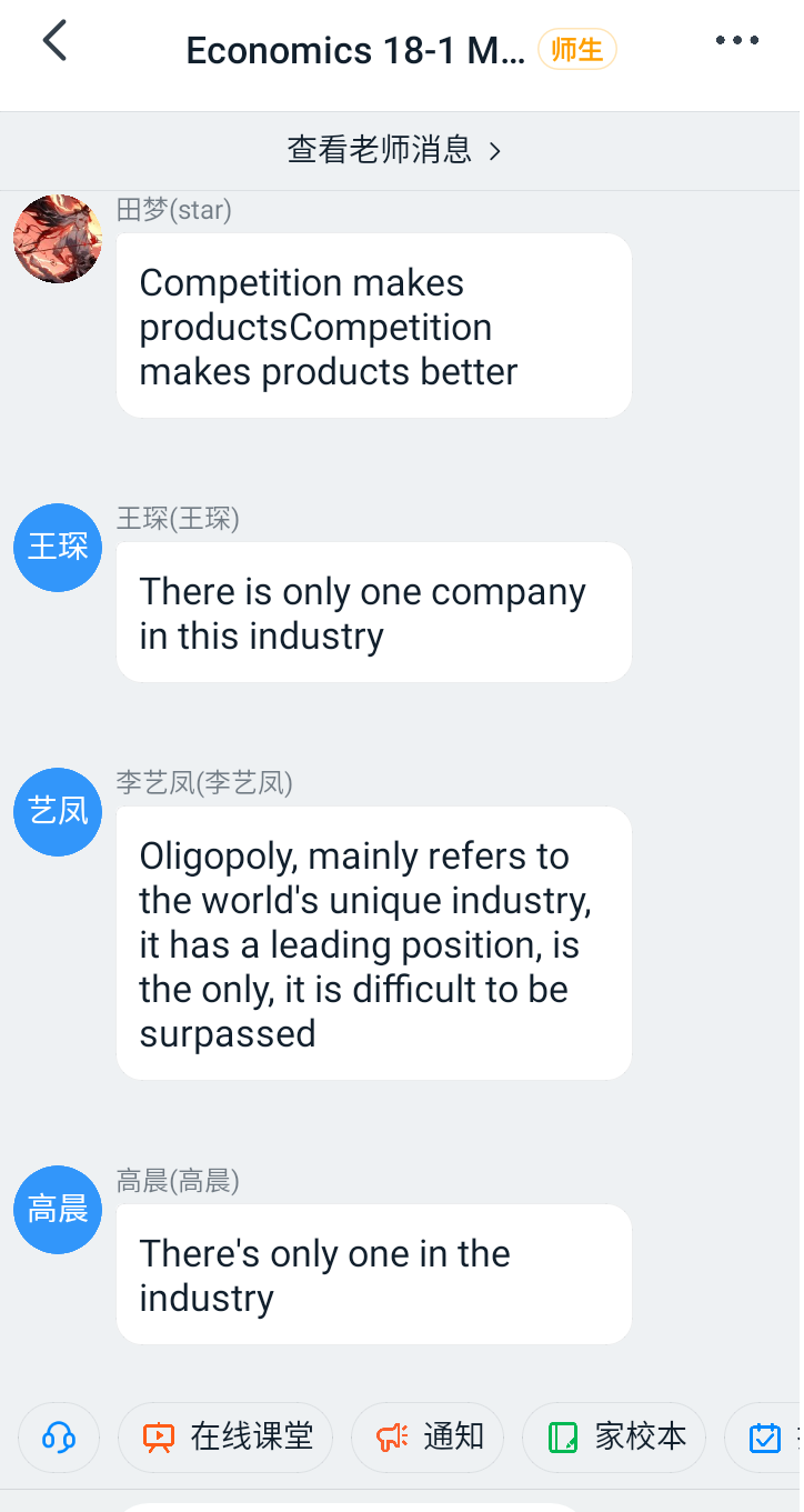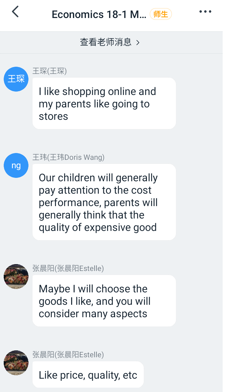 Jack老师利用线上教学软件钉钉为经济学专业的学生开展Marketing课程的在线教学。首节课上,Jack亲切和蔼的口吻就赢得了学生们的一致喜爱,与同学们共同讨论疫情期间彼此生活,拉近了与同学之间的关系。