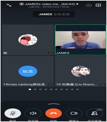 Howell老师通过钉钉平台进行直播授课,教授学生关于微电影创作方面的相关知识,从基础知识开始,一步步的教学生们如何进行微电影创作。James老师幽默风趣、教学方法独特且新颖,广受同学们的一致好评,得到同学们的一致认可。