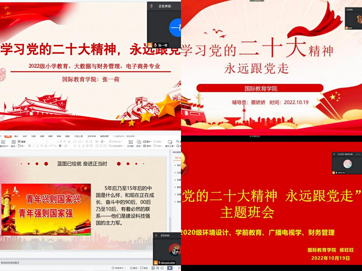 党的二十大胜利召开,我院掀起学习宣传党的二十大精神热潮,2022年10月19日至20日,yl6776永利集团(归德书院)全体育人导师组织召开“学习党的二十大精神,永远跟党走”主题班会,班会以线上线下相结合的方式进行,全体学生参加。