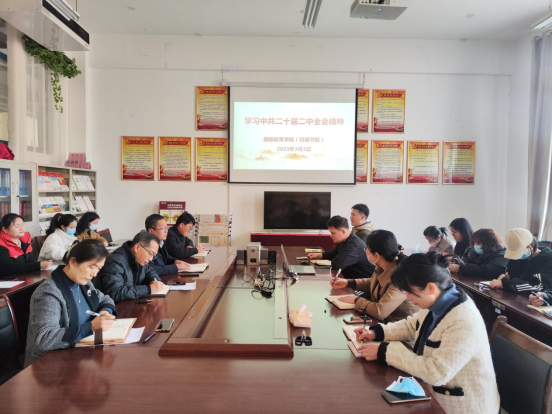 3月3日下午,我院在梁园校区汉梁楼144党员活动室组织开展2023年第一次政治理论学习,专题学习党的二十届二中全会精神,学院全体教职工参加学习。党委书记陈华主持。