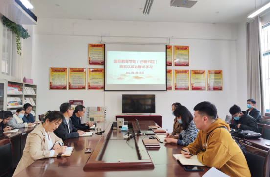 3月31日下午,我院在梁园校区汉梁楼144党员活动室组织开展2023年第五次政治理论学习,专题学习习近平总书记在第十四届全国人民代表大会第一次会议上的重要讲话精神。全体教职工参加学习,党委书记陈华主持。