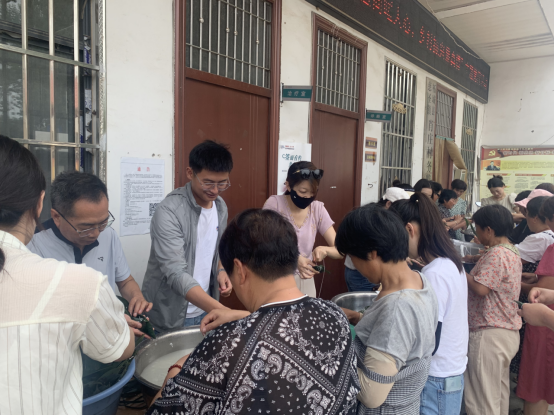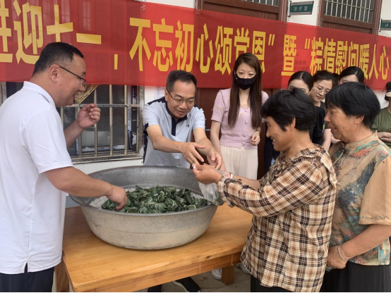 为传承和弘扬中华优秀传统文化,值此端午佳节之际,学院教工党员与村民一起在村委广场包粽子、唠家常,面对面交流了解乡村振兴方面的进展情况。并将热气腾腾、满载关心的粽子送往每一户五保老人家中和帮扶对象手中。