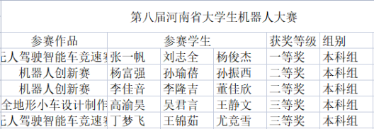 近日,第八届河南省大学生机器人竞赛在河南省科技馆新馆落下帷幕,我院共组织多支队伍参赛,最终获得一等奖1项、二等奖2项、三等奖2项的优异成绩。