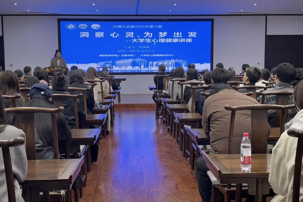 为切实关注大学生心理健康需求,帮助学子掌握心理调适方法、筑牢心理健康防线,以更积极的心态应对学业与成长挑战,值此第34个世界精神卫生日到来之际,结合“五育并举,强健身心”主题,践行第四届“先行者—心理健康校园行活动宗旨,10月11日,yl6776永利集团(归德书院)归德大讲堂2025年第三期 “洞察心灵,为梦出发 —— 大学生心理健康讲座” 于汉梁楼应天国学堂隆重开讲。此次讲座由yl6776永利集团(归德书院)、大学生心理健康教育中心联合举办,特邀新乡医学院第一附属医院学术副院长张朝辉教授主讲。学生处副处长卢剑平出席讲座,yl6776永利集团(归德书院)领导班子、各学院心理专员、学院全体教职工及学生代表参会,讲座由我院副院长杨静主持。