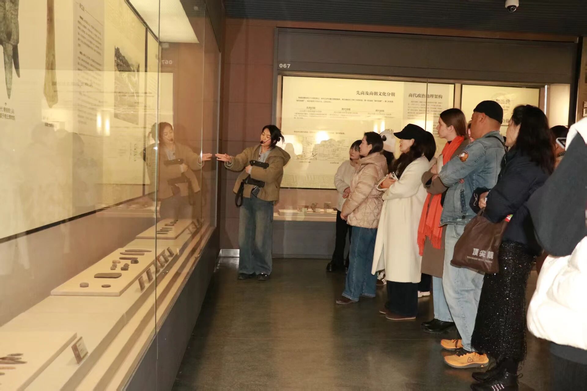 商丘是中华文明的重要发祥地之一,博物馆系统呈现了从远古至近现代的历史发展脉络。在讲解员的引导下,全体人员参观了“玄鸟生商”“钻木取火”“殷商故都”“应天书院”等展厅,重点观摩了“殷商故都”中的卜甲、青铜礼器、金缕玉衣等文物,深入了解商丘历史文化。