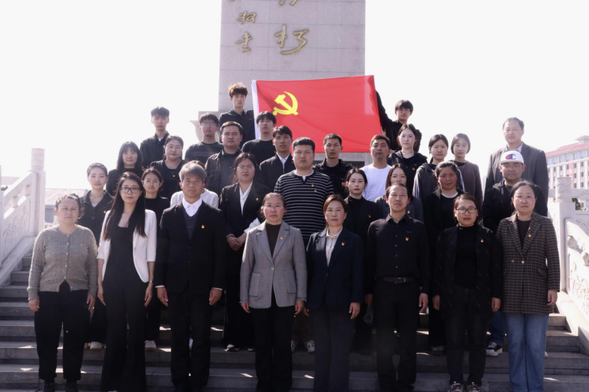 党课结束后,副院长孟喜华带领全体党员面向鲜红的党旗重温入党誓词,铿锵有力的誓言回荡在纪念碑前,彰显着大家坚定理想信念、牢记初心使命的决心。