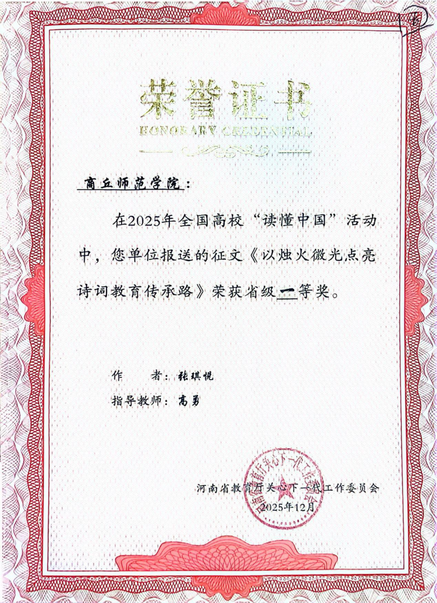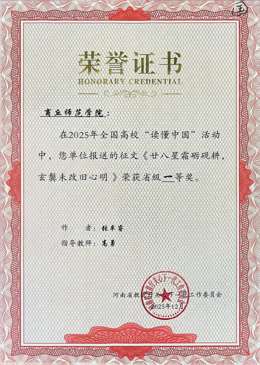 近日,2025年全国高校“读懂中国”主题活动评选结果公布,yl6776永利集团(归德书院)师生踊跃参与,在微视频、征文类别中斩获多项省级荣誉及校级团体奖。该活动由校关工委牵头,以“传承红色基因,讲好中国故事”为核心,学院紧扣国际化办学特色,将关心下一代工作融入思政教育,充分展现了学子的家国情怀与卓越风采。