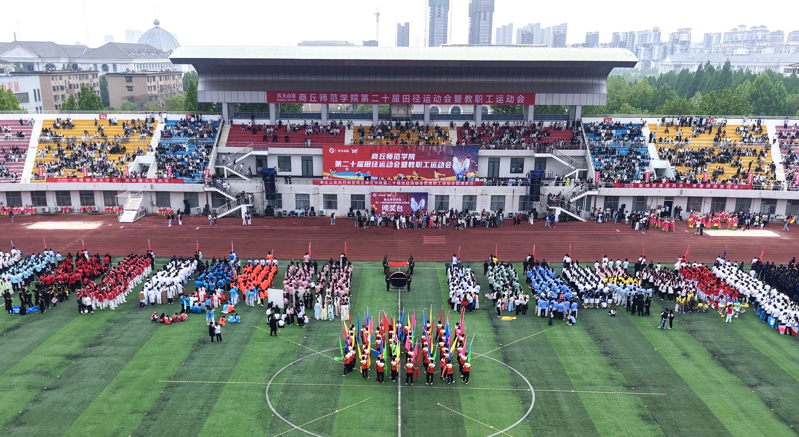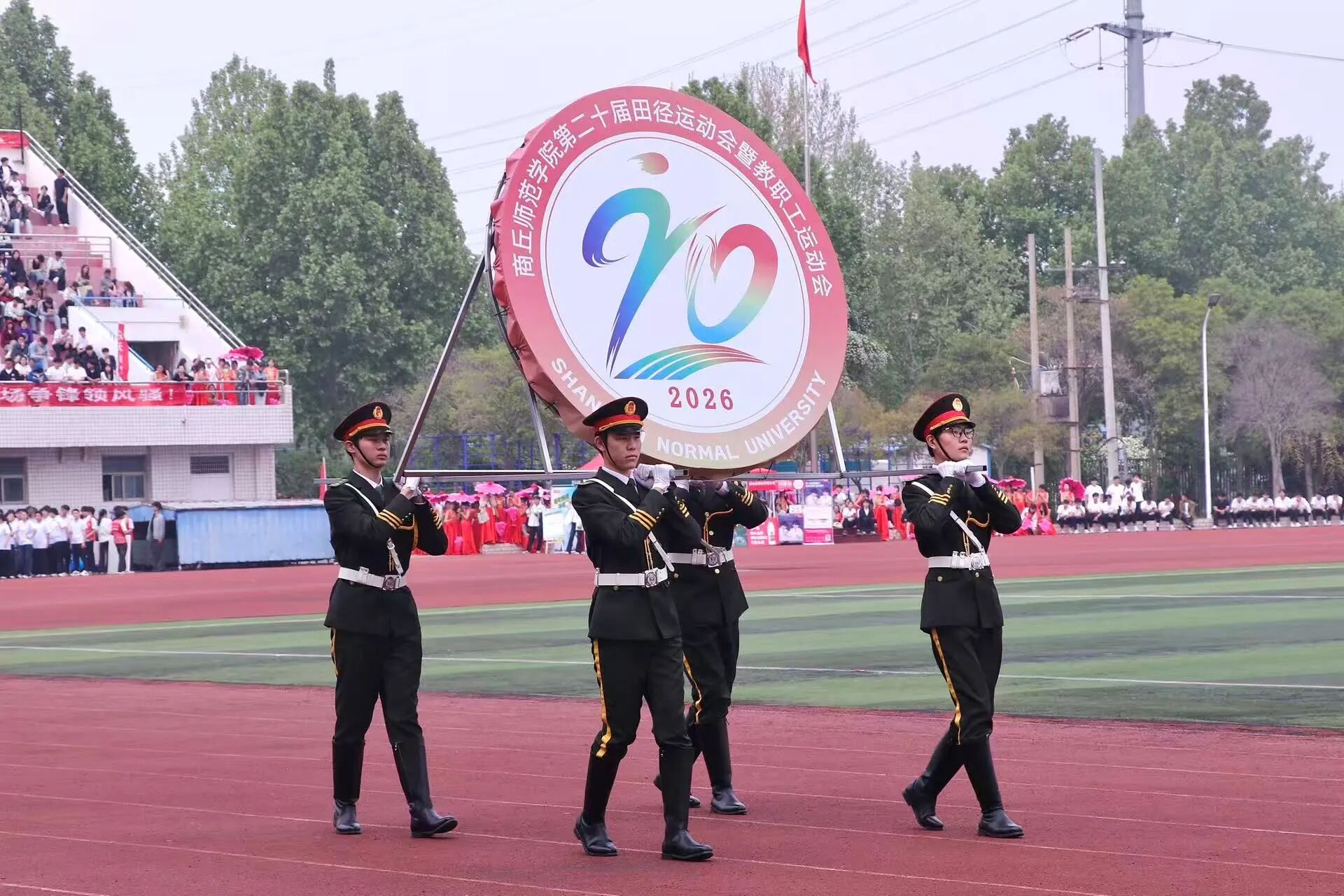 随后,各学院方阵依次入场,她们昂首阔步、口号嘹亮,用活力与创意绽放青年独有的青春锋芒。教职工方阵的老师们精神抖擞、步履从容,用沉稳与担当展现师者风范,书写商师人的别样风采。