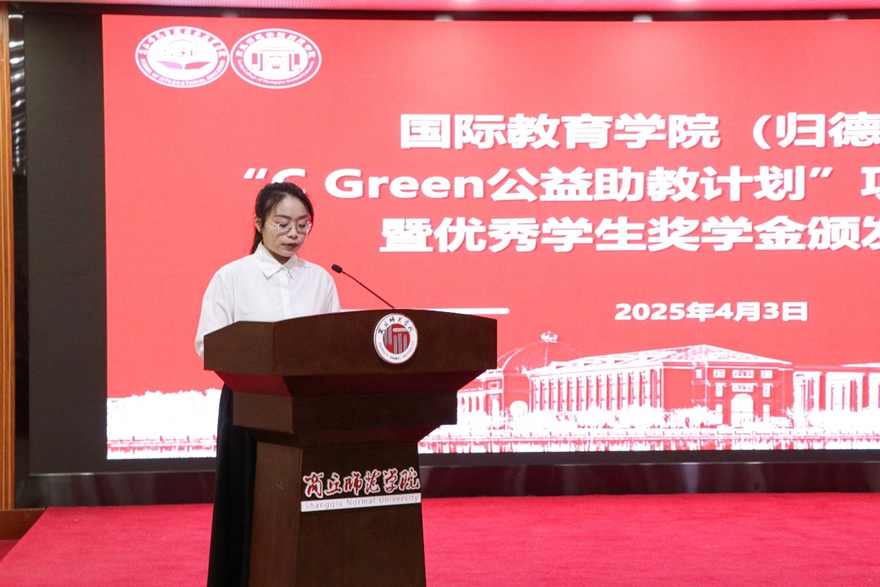 最后,副院长杨静对我院“CGreen公益助教计划”的开展情况进行汇报,并对学生提出三点期望:一是以“绿色育人”为根基,厚植家国情怀;二是以“实践创新”为引擎,锤炼过硬本领;三是以“公益精神”为纽带,勇担时代使命,勉励全体学生以获奖同学为榜样,勤奋学习、勇于实践,务社会中实现自我价值。