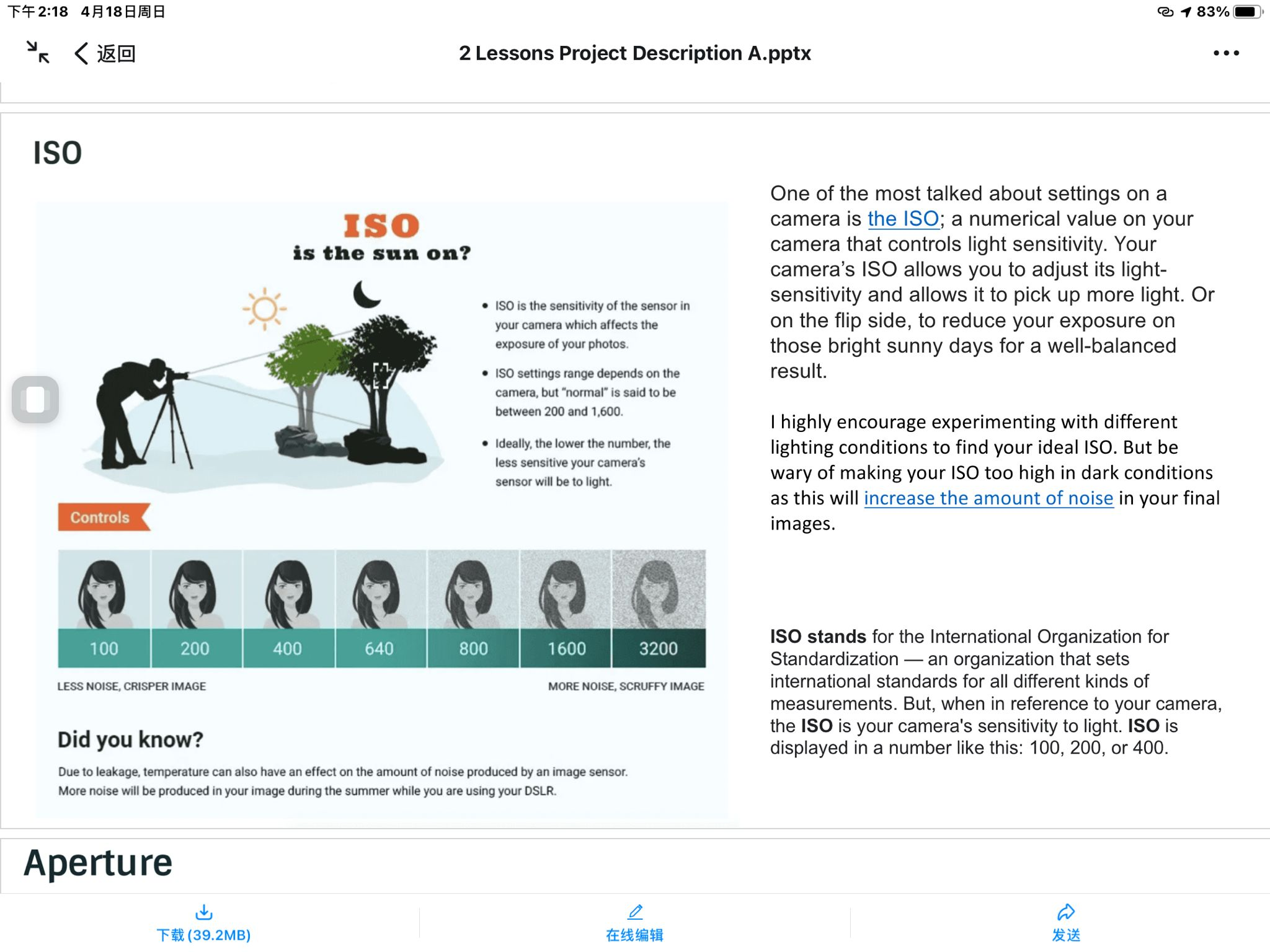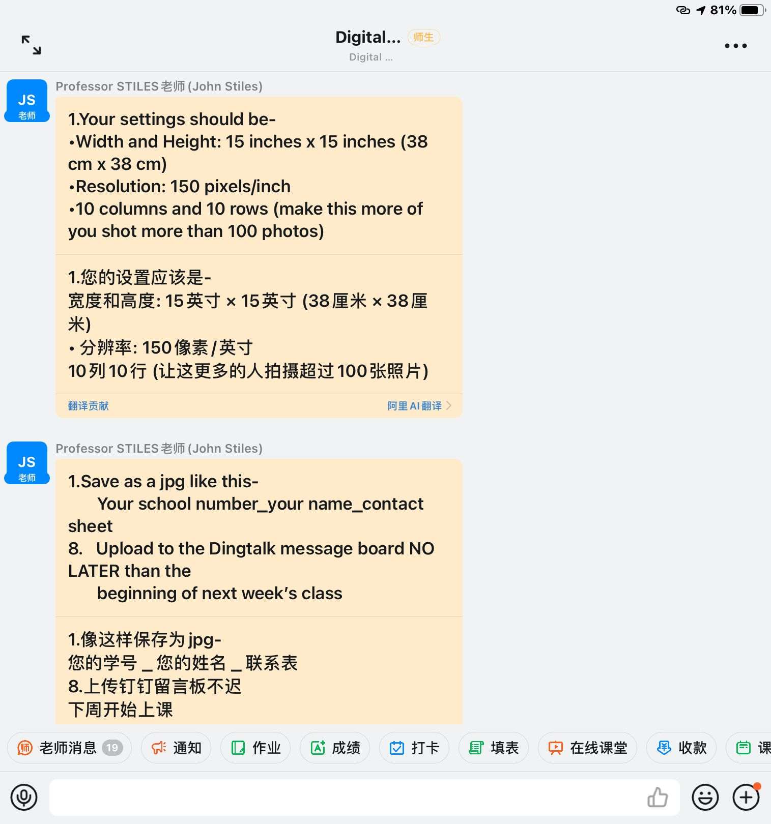 在课堂上,Stiles老师教授了学生们相机的基础数值参数知识,播放了相应的理解视频,让学生们更熟练地运用相机,掌握基础的数码摄影知识。在同学们遇到了不太理解的问题时,Stiles老师耐心讲解,让学生们做到真正理解。课下,Stiles老师为学生们布置了充实丰富的作业,如通过手动调整相机IOS 参数去感受照片的对应变化等,让学生们在以后的拍照中更加得心应手。
