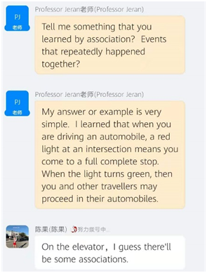 Jeran通过钉钉平台与学生视频连线,开展“零时差”线上跨国授课。在课上,Jeran老师通过形式多样的游戏,由浅入深地帮助学生学习心理学。有趣的课堂激发了学生对专业学习、英语学习的热情和兴趣,课堂气氛热烈,同学们发言踊跃。