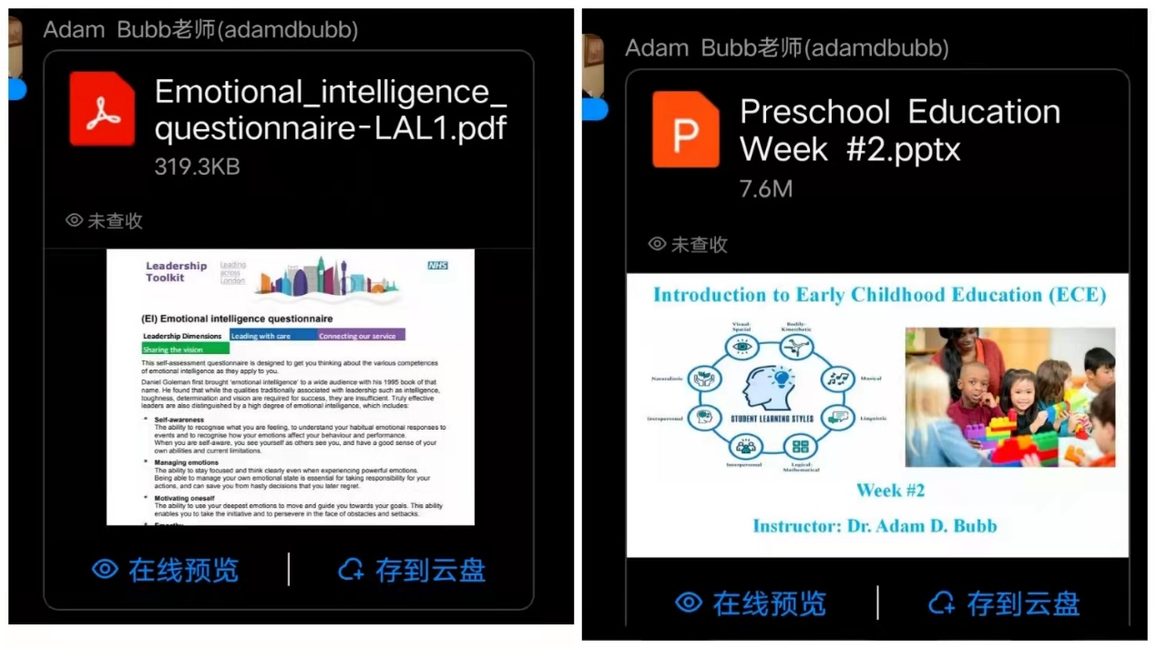 课后,Adam D. Bubb老师给同学们发送了每节课的课程内容课件,方便同学们温习和完成作业。