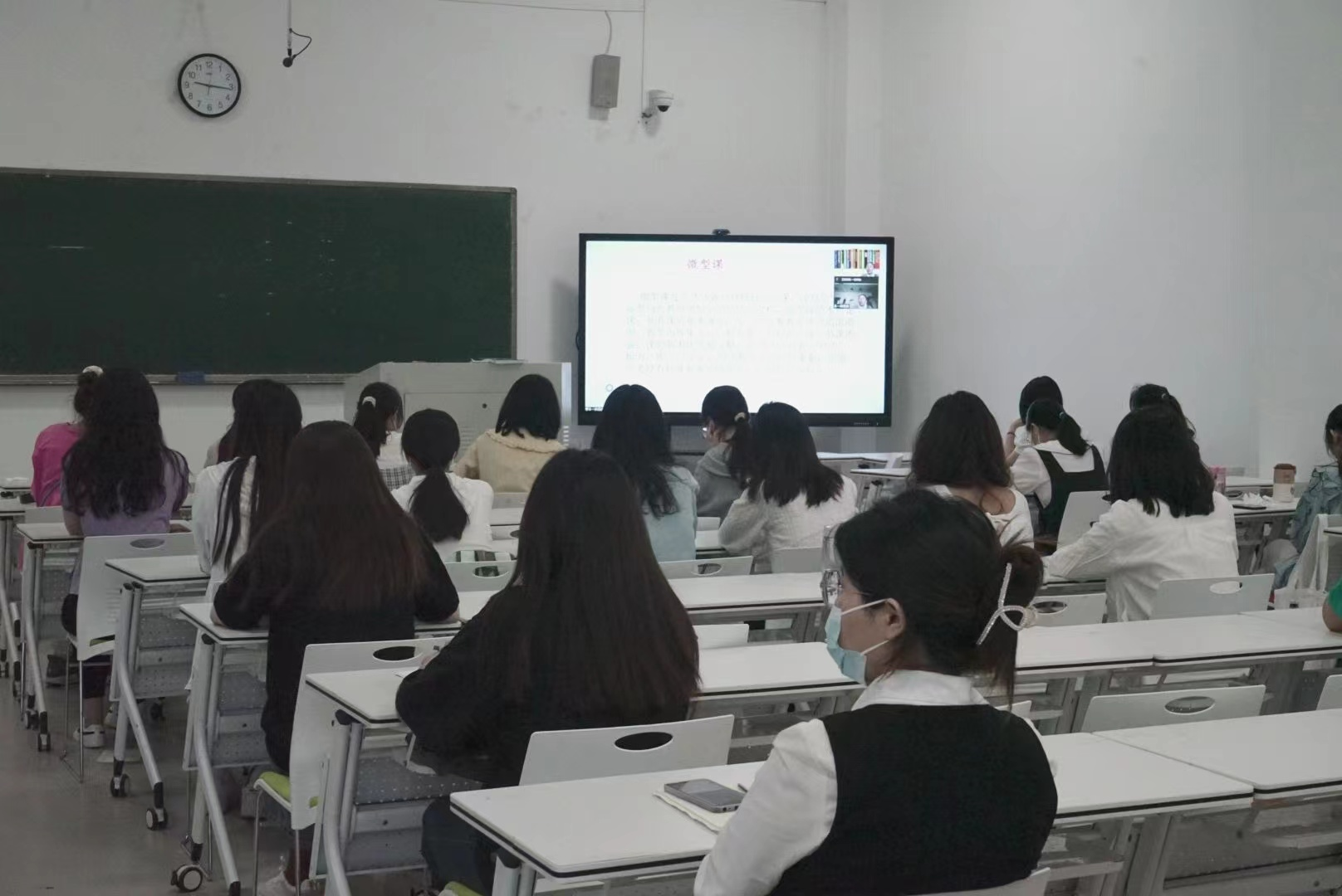 同一天下午2点半,在行方楼412举行了语文专场讲座。王霞老师提醒同学们微型课里的教学评价一定要有内容,要能够帮助学生提升对知识点的理解。同时她指出,教学实施要注意三个迅速:迅速切题、迅速点明重点和迅速展示亮点。同学们跟随着老师的讲解,对如何准备微型课有了更为明确的认识。