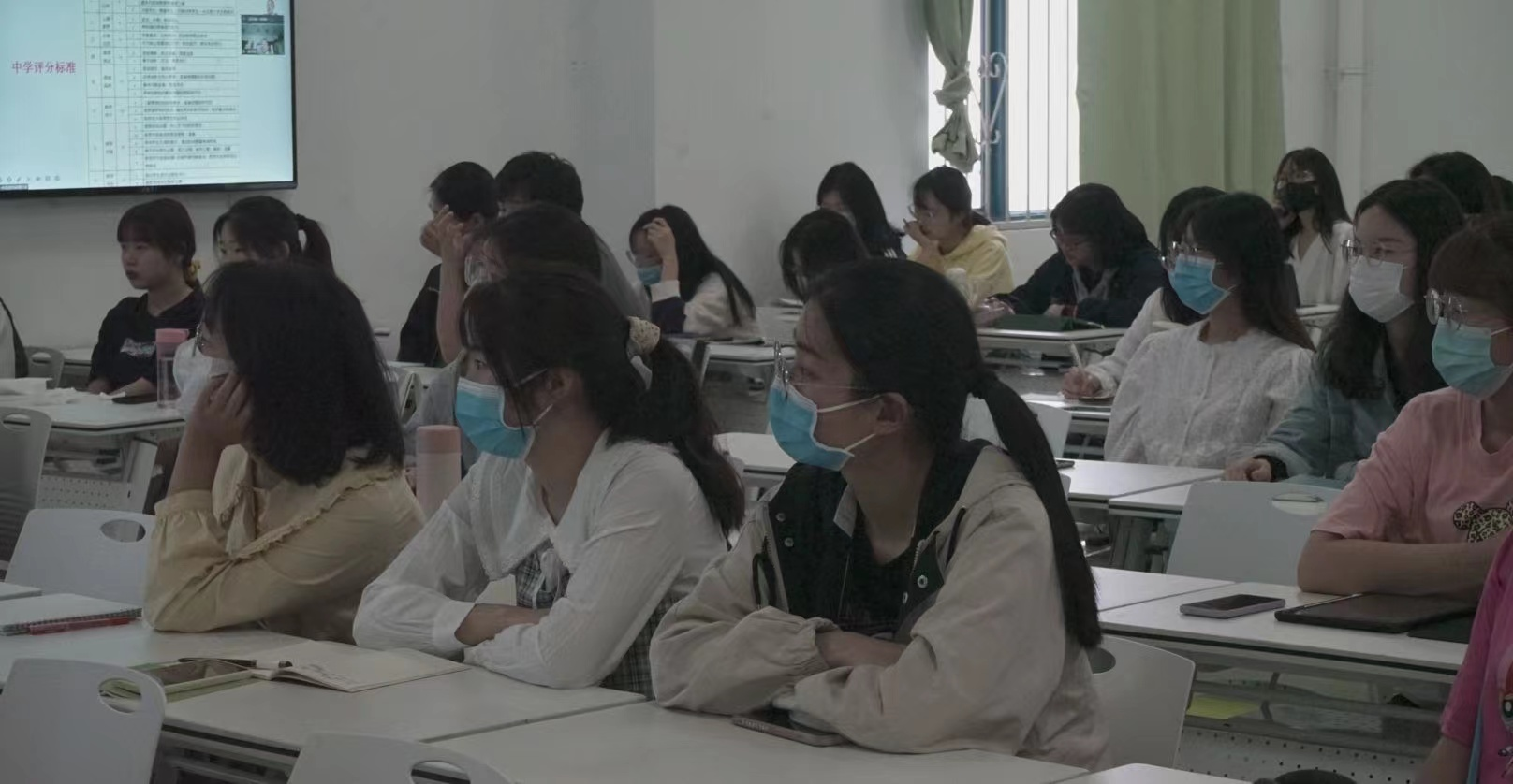 我院有本、专科15个专业。同学们报名教师资格证涉及学科多样,比较集中的体现在高中小阶段的数学、英语、语文、美术和幼儿园五个方向。在每个专题讲座的结束和开始之间,线下参会的同学们有序离场、入场,展现了较高的纪律素养。未返校的同学和尚未完成笔试的同学也通过网络远程观看了相关专题讲座直播。
