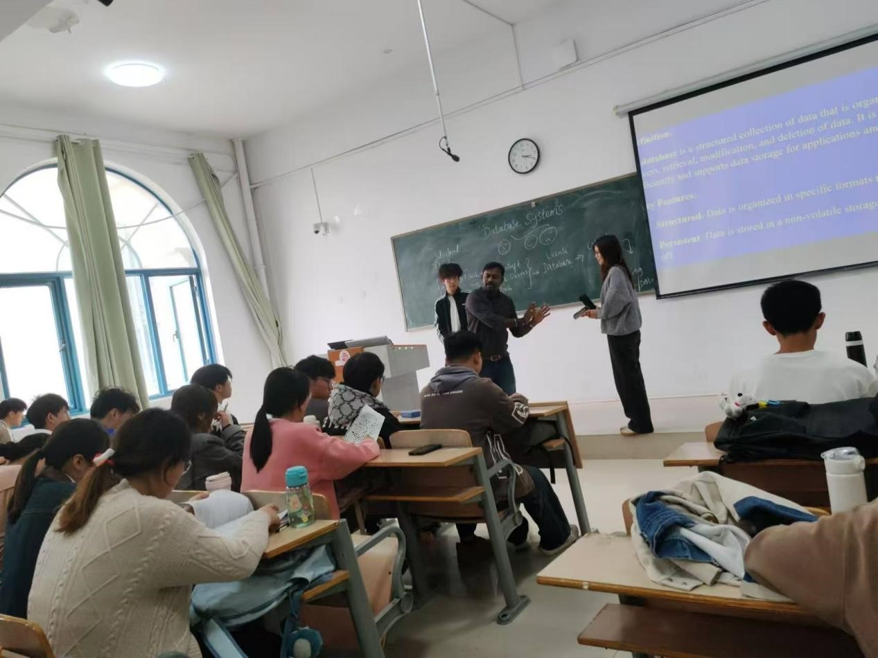 课堂上,Vijesh教授用流利的英语和生动的案例,深入浅出地讲解了数据库系统的基本原理、架构以及应用,将复杂的理论知识变得直观易懂,使学生能够迅速掌握核心要点。