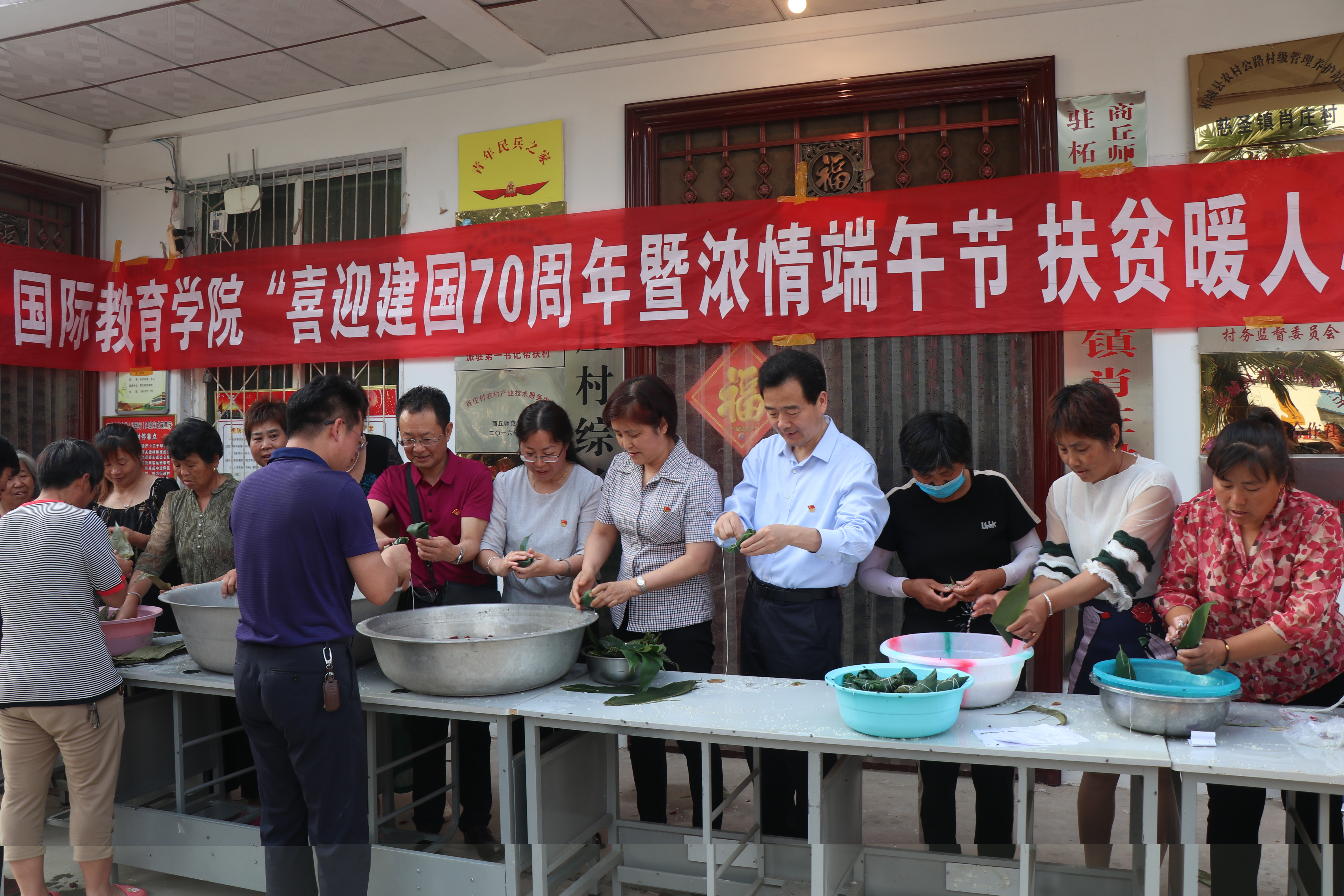 文艺汇演上,师生们围绕“爱我中华”“脱贫攻坚”“和谐幸福”等主题,给村民们呈现了歌曲、舞蹈、戏曲、朗诵等节目。精彩纷呈的节目吸引了村民前来观看,现场掌声不断。端午粽香,传承传统文化习俗,师生们在村委广场包粽子。热气腾腾的粽子送到每一户五保老人、帮扶对象手中。