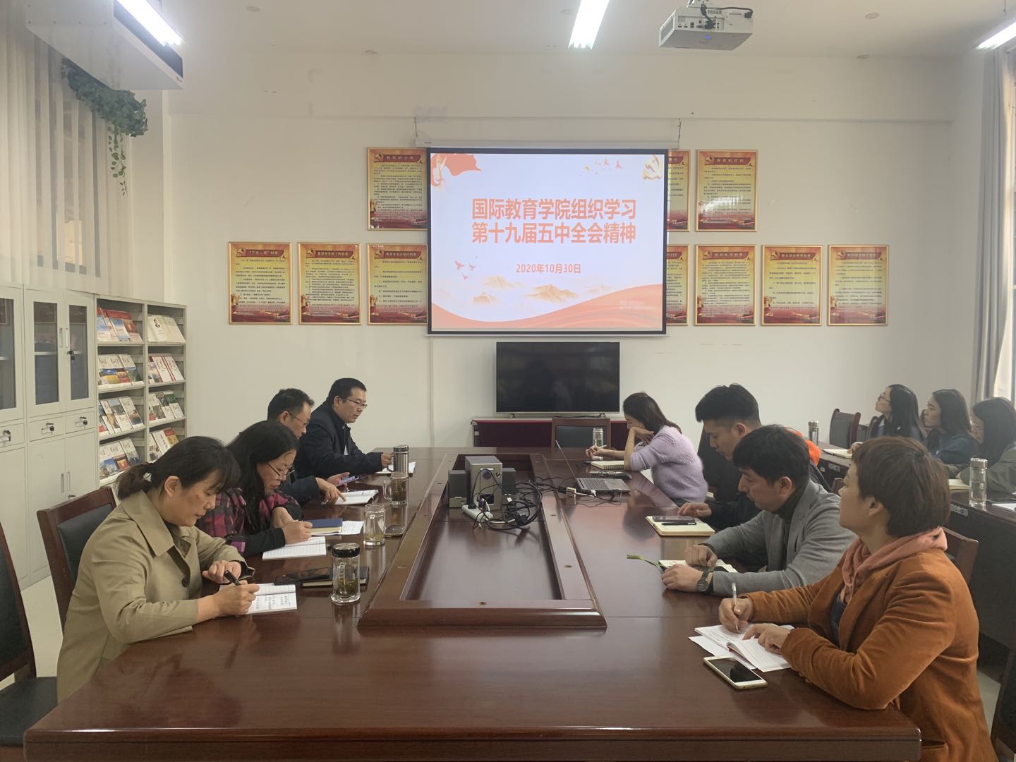 10月30日,yl6776永利集团在汉梁楼144党员活动室集体学习了中国共产党第十九届中央委员会第五次全体会议精神,学院领导班子和全体教职工参加学习。党总支书记李秀琴逐字逐句领读了五中全会公报,并对有关内容进行解读。