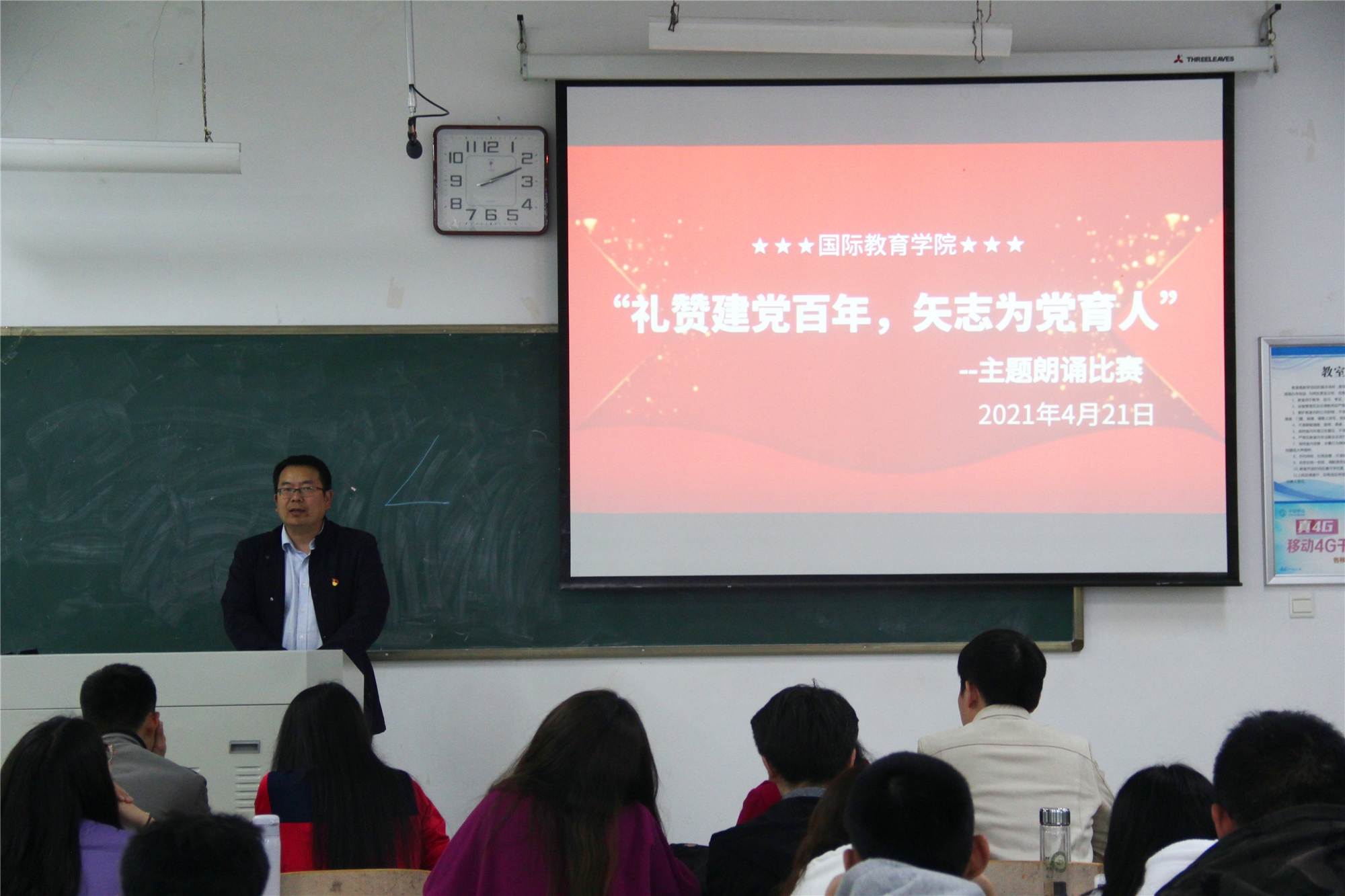 为庆祝中国共产党成立一百周年,以高质量的师德建设水平向建党百年献礼,4月21日中午,yl6776永利集团在行方楼312教室举办“礼赞建党百年,矢志为党育人”诗歌朗诵比赛。学院党总支副书记宁智锋、团总支书记许斌、学生工作办公室副主任薛霁、辅导员老师代表和部分学生代表参加活动。