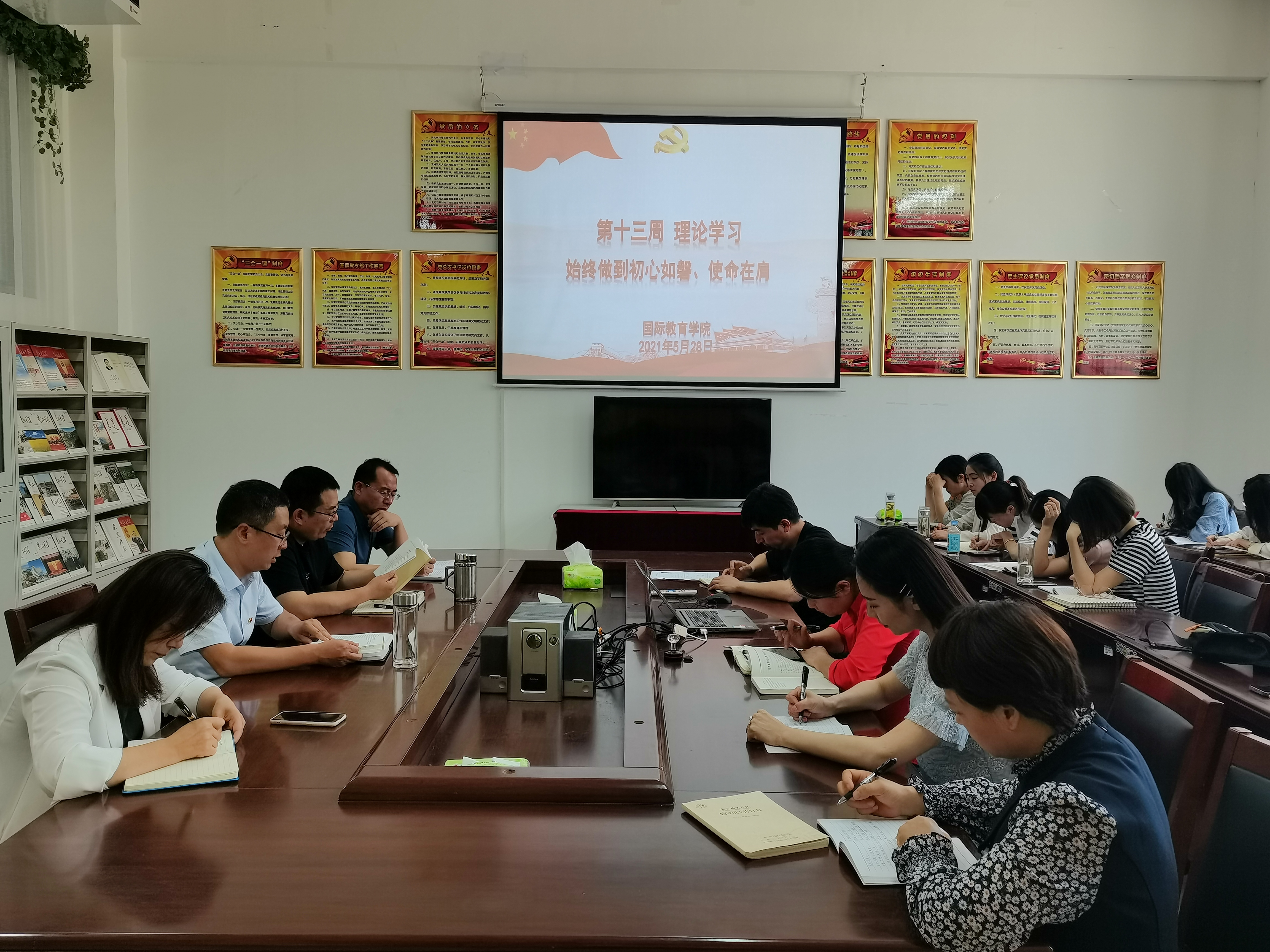 2021年5月28日,yl6776永利集团组织全体教职工在梁园校区汉梁楼144党员活动室,集中学习习近平《论中国共产党历史》中的重要文章《始终做到初心如磐、使命在肩》,党委书记陈华领学。