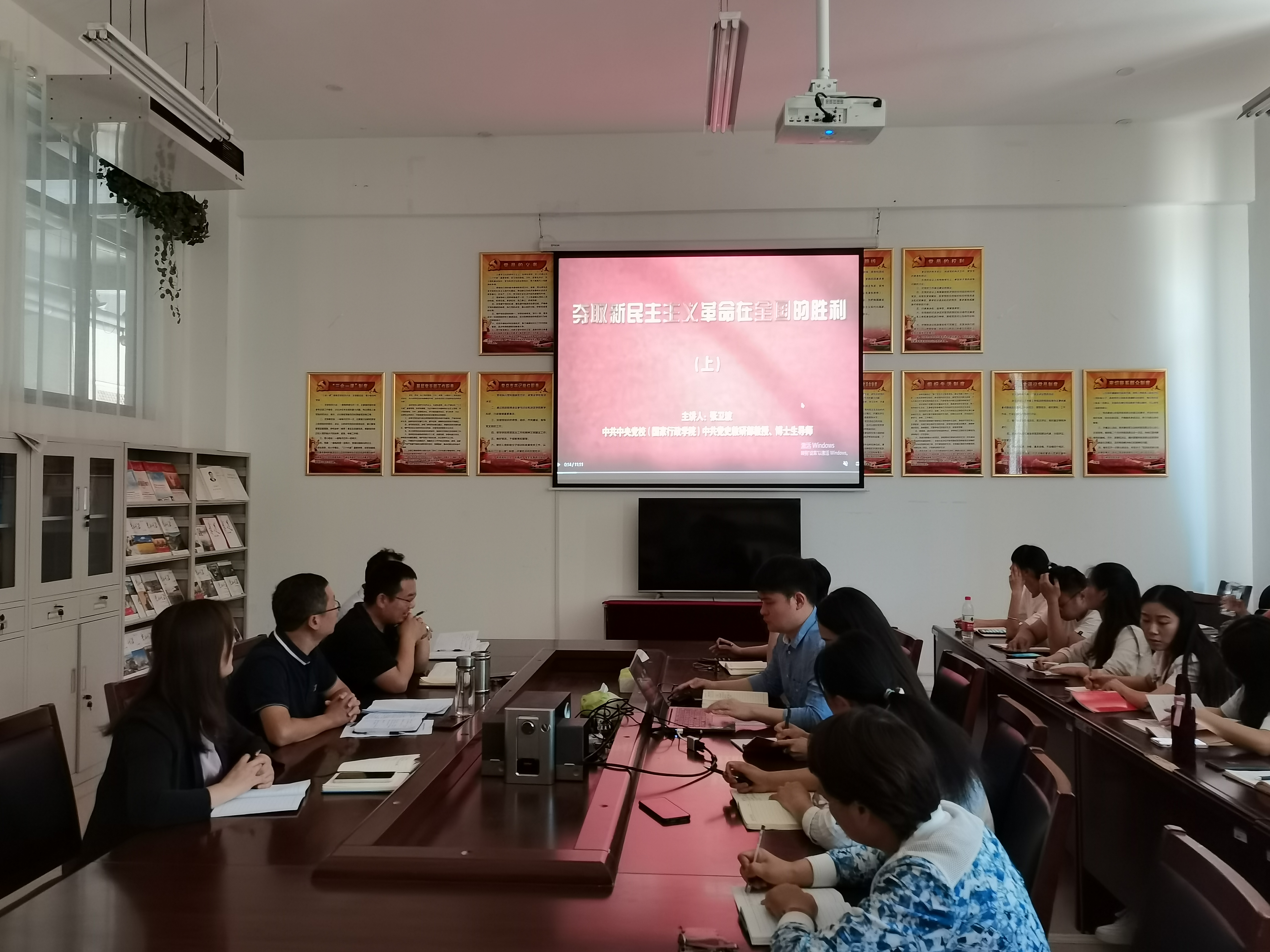 2021年6月4日,yl6776永利集团组织全体教职工在梁园校区汉梁楼144党员活动室,集中收看学习《夺取新民主主义革命在全国的胜利》。