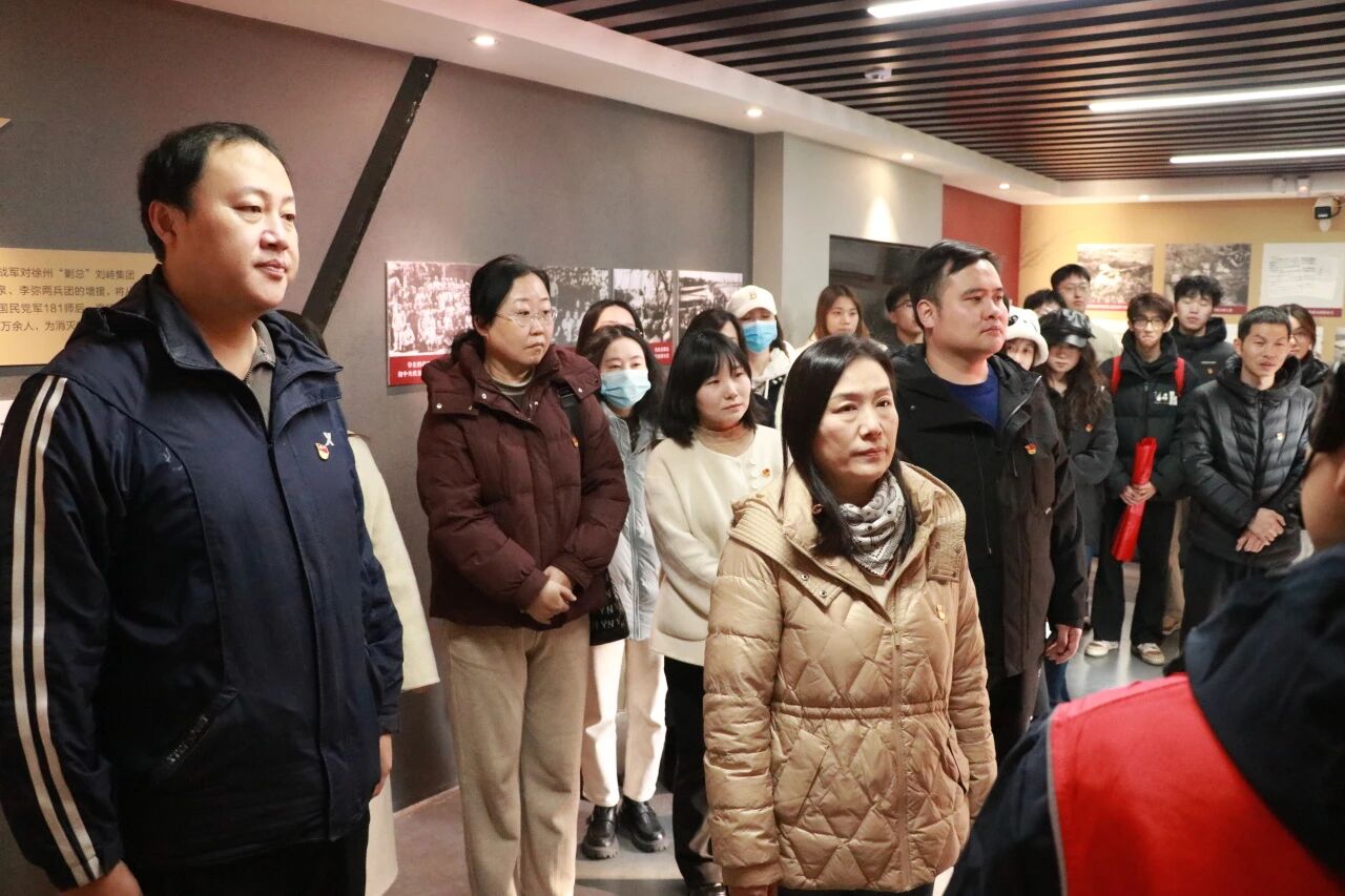 活动现场,师生党员们依次参观纪念馆各个展室,通过珍贵史料、实物展品、场景复原等,重温淮海战役中军民同心、浴血奋战的壮阔历程,深切感悟革命先辈为民族解放事业挺身而出的家国情怀与使命担当。在英烈事迹陈列区,大家驻足凝视、认真聆听,不时交流感悟,接受深刻的党性教育和精神洗礼。