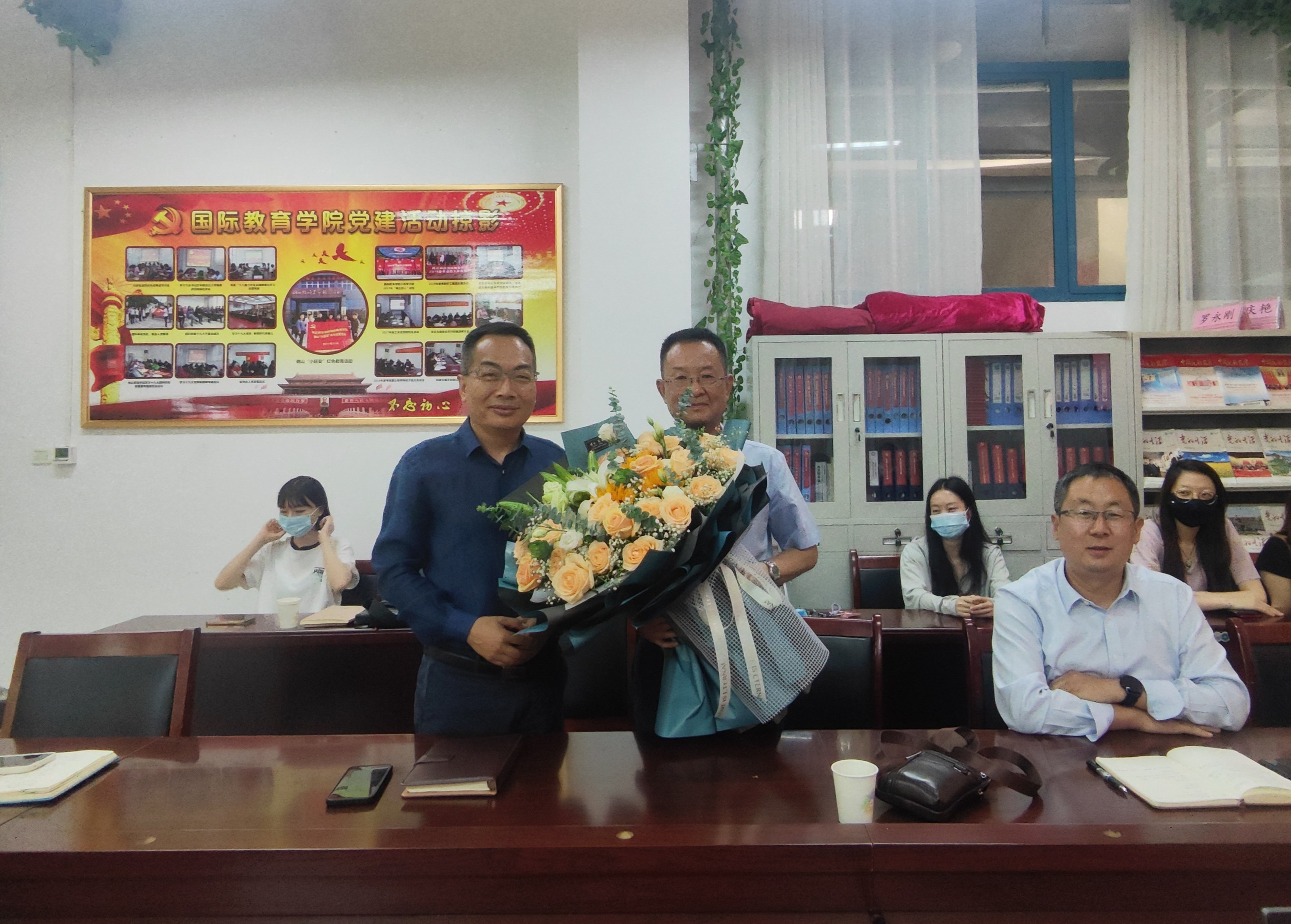 周运增代表学院为任付标送上鲜花。全体教职工用最诚挚的掌声,感谢任付标对教育事业的倾注和执着,感谢他为学校、学院事业发展所付出的心血和努力。会后,大家合影留念。