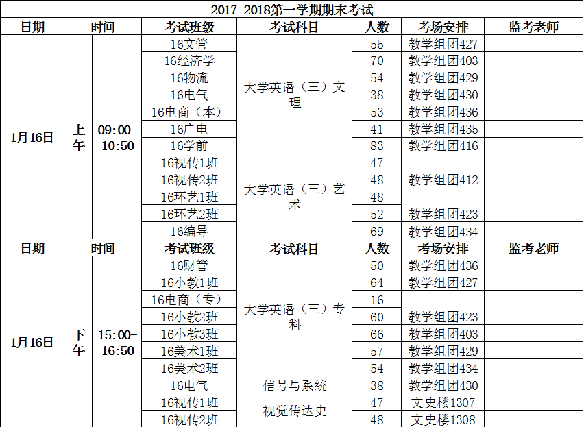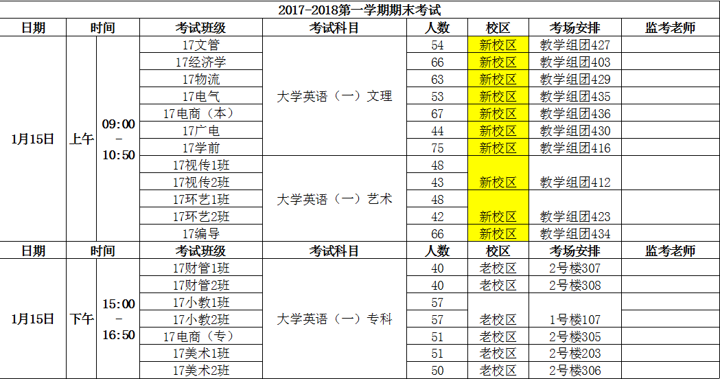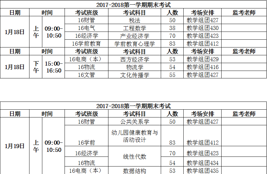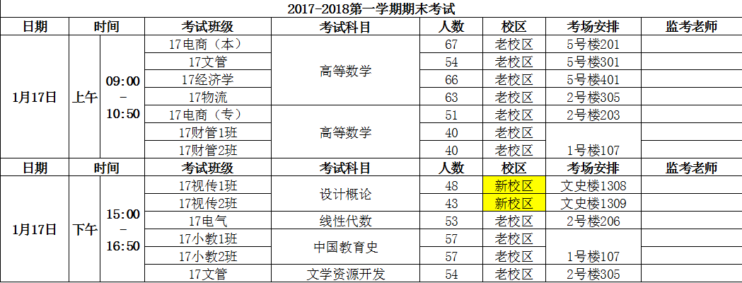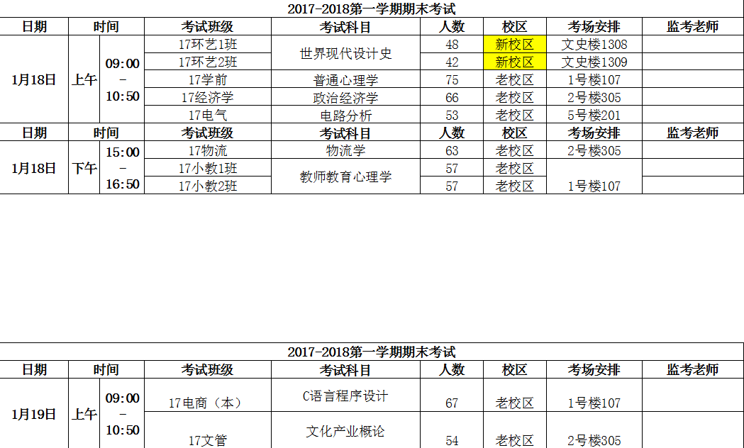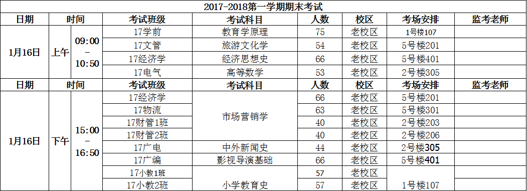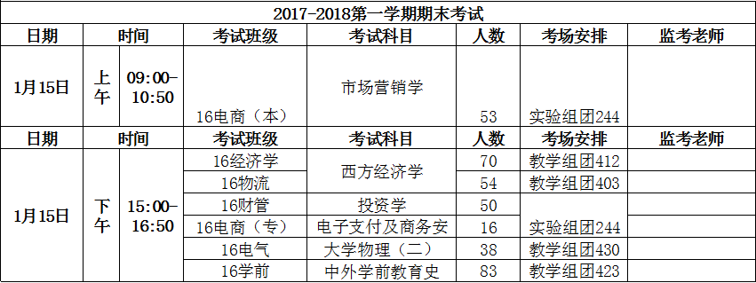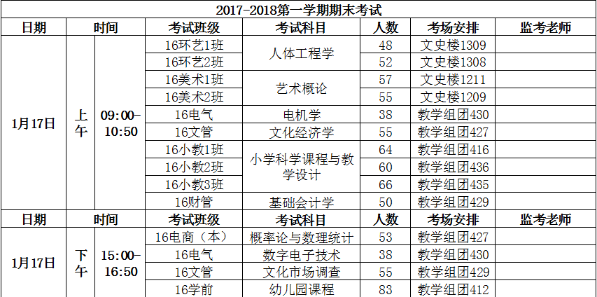 2017-2018第一学期期末考试 yl6776永利集团期末考试安排表