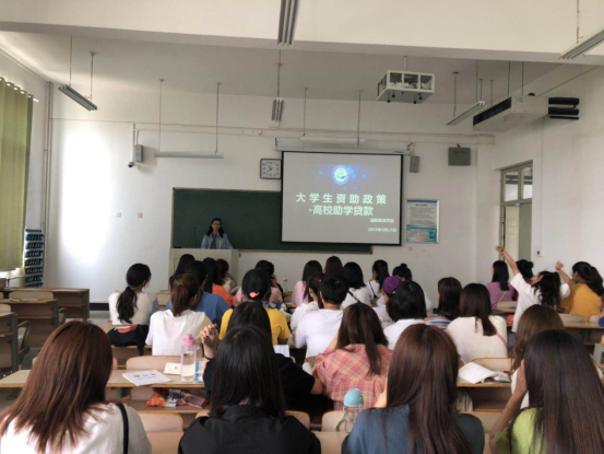 为促进国家助学贷款工作的顺利开展,增强大学生的诚信意识, 4月17日下午,教学组团楼333教室开展资助政策宣传活动由学院辅导员曹彩萍主持,2018级学生参加了本次活动。