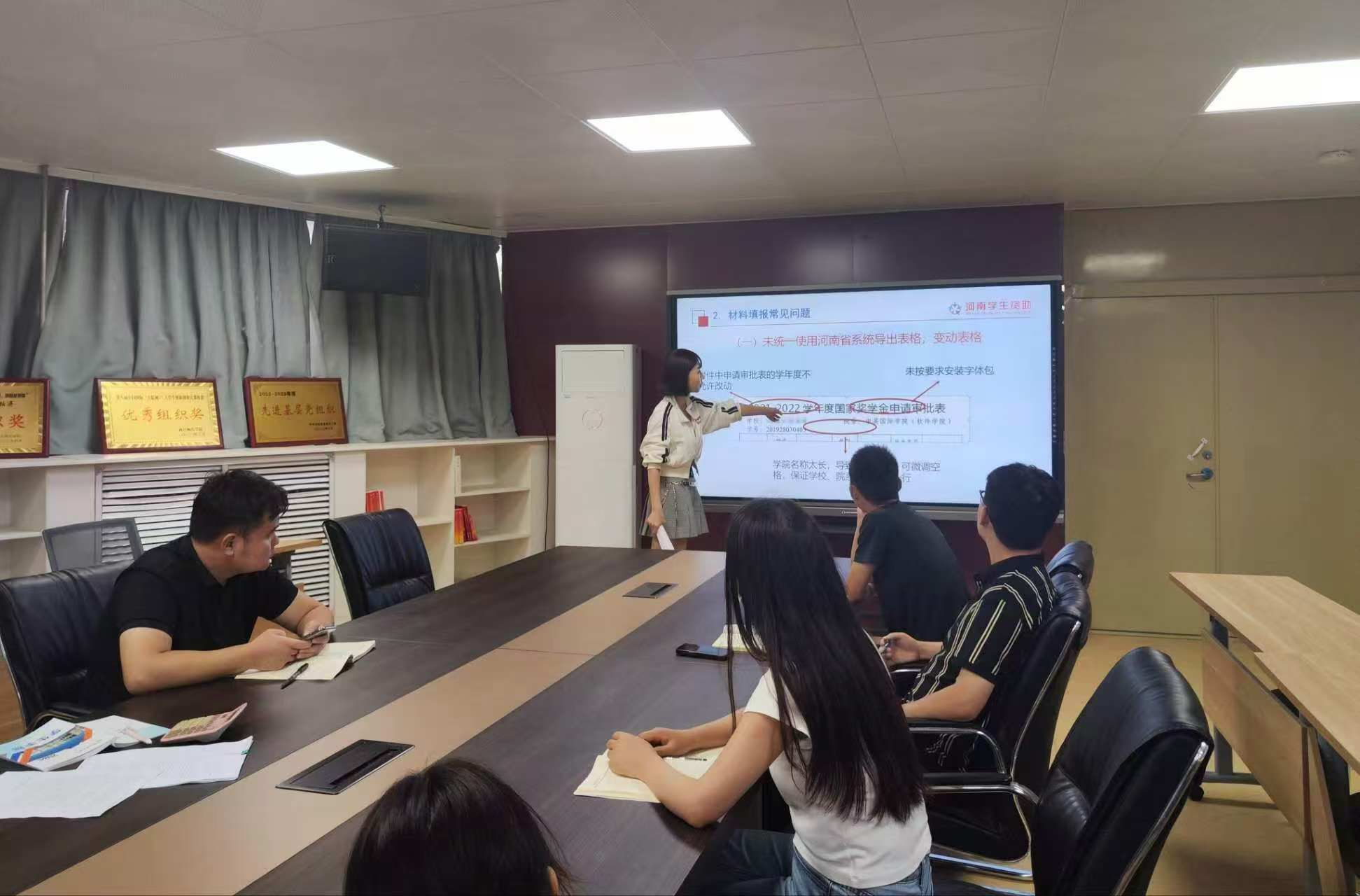 会议开始,赵老师播放了我校学生资助政策宣传片,带领大家初步了解国家和学校的资助政策及类型。随后,赵老师分别从奖、助、贷、勤、补、免六个方面,详细介绍了国家奖学金、国家励志奖学金、国家助学贷款、国家助学金、校园地贷款、学费减免、勤工助学等多项资助政策,细述了学院近年来资助育人活动的开展情况。最后,赵老师鼓励同学们要秉持自强不息精神,积极进取,担当作为。
